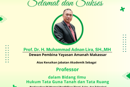 Prof. Dr. H. Muhammad Adnan Lira Resmi Raih Jabatan Guru Besar Bidang Hukum Tata Guna dan Tata Ruang Dewan Pembina Yayasan Amanah Makassar, Prof. Dr. H. Muhammad Adnan Lira, SH., MH, secara resmi memp...